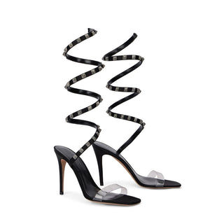 Patrizia Pepe Black Calfskin Stiletto Heel Sandals