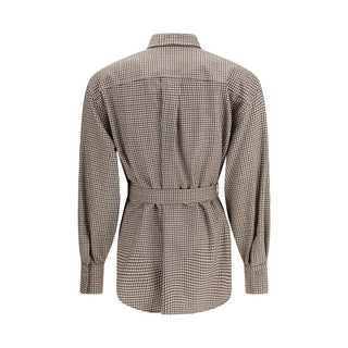 Brunello Cucinelli Brown Fleece Wool Pattern Shirt
