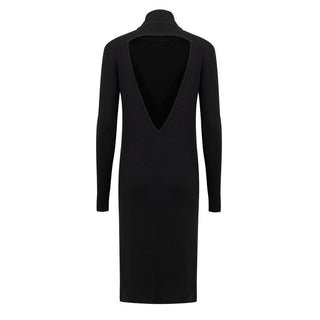 Emporio Armani Black Viscose Short Sleeves Sheath Midi Dress