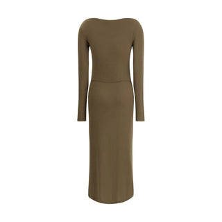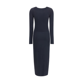 Patrizia Pepe Elegant Blue Crew Neck Dress with Logo Detail