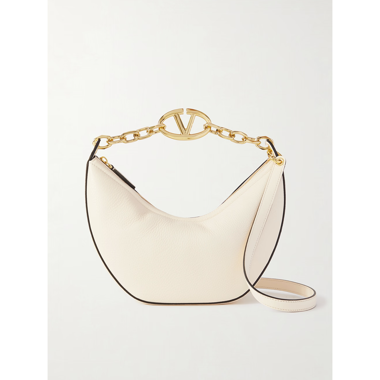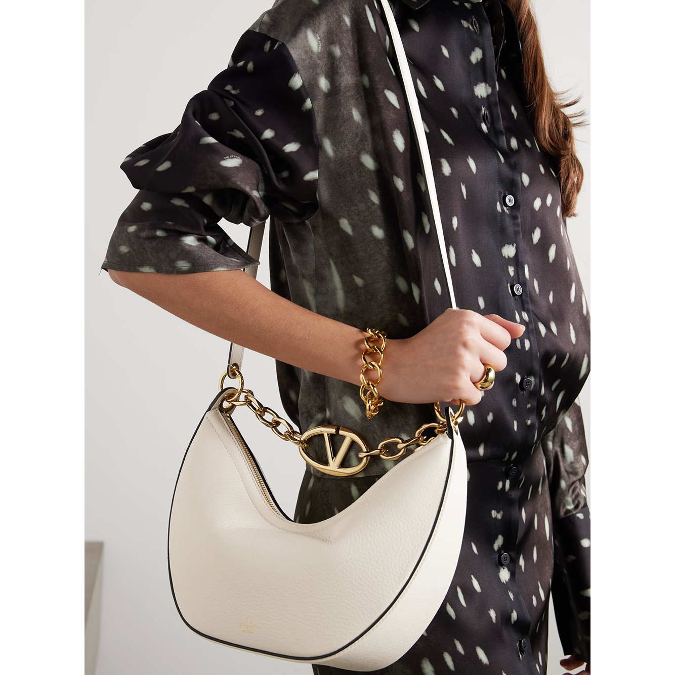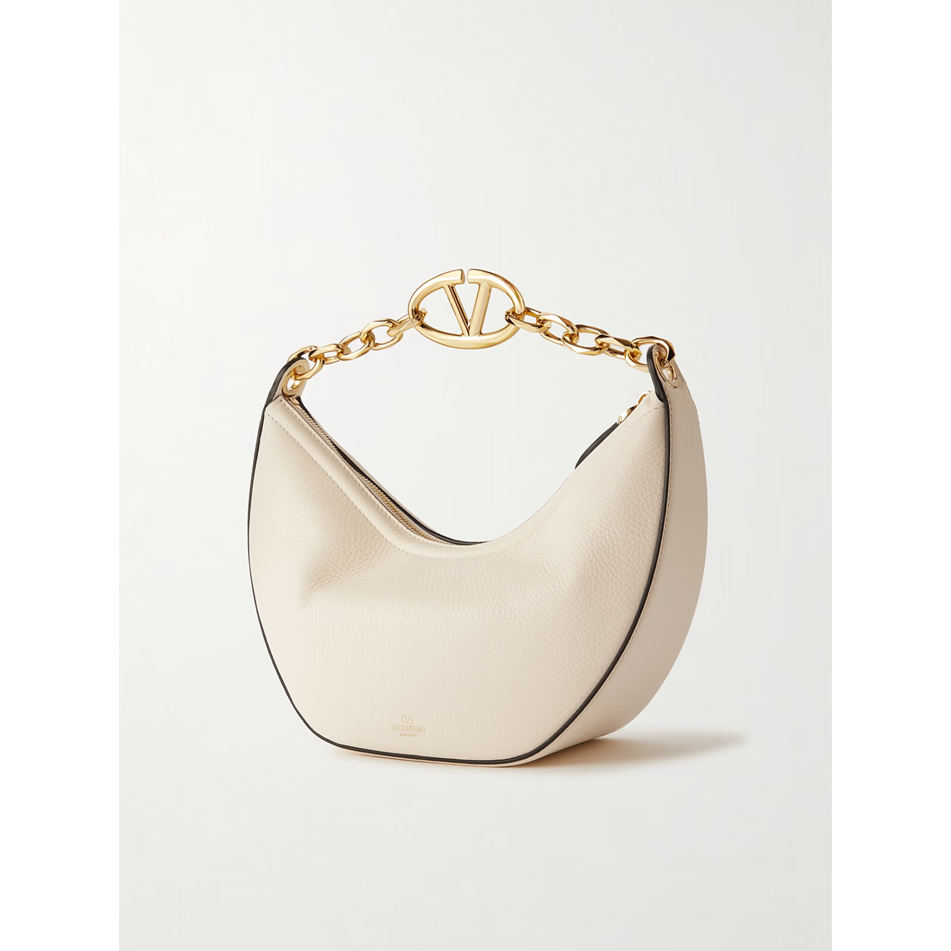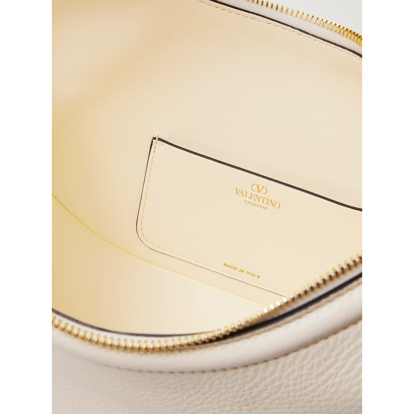 Valentino Garavani Ivory Leather Small Hobo Vlogo Shoulder Bag