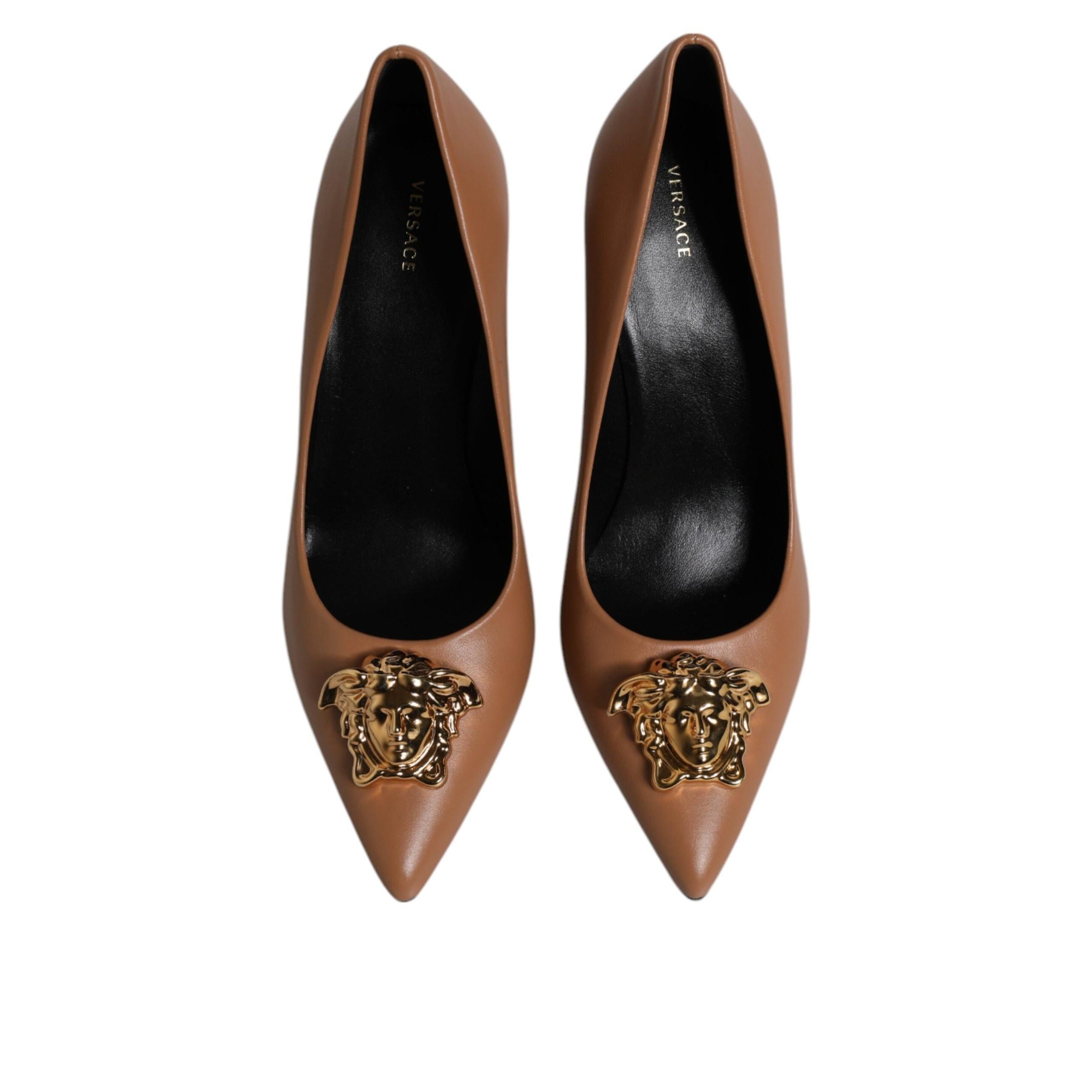 Gorgeous brand new with tags, 100% Authentic VERSACE black leather logo plaque high heels pumps.